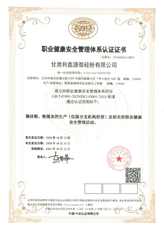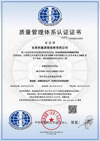 甘肅利鑫源微硅粉有限公司是專業(yè)微硅粉生產(chǎn)加工廠家,從事研發(fā)高品質(zhì)微硅粉,以出口為主的科技型企業(yè)。自2004年以來(lái),公司專做微硅粉十七年。擁有先進(jìn)的生產(chǎn)和化驗(yàn)設(shè)備,并通 過(guò)了ISO9001:2015質(zhì)量管理體系認(rèn)證、ISO145001:2018環(huán)境管理體系認(rèn)證和ISO 45001: 2018職業(yè)健康管理體系認(rèn)證。